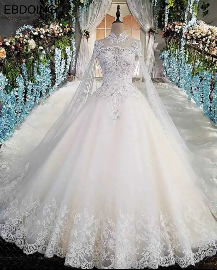 Buy Now EBDOING Luxurious Lace Ball Gown Wedding Dress High Neckline Vestidos De Novia Custom Made Plus Size Bride Dress before expired and You will save 25% today